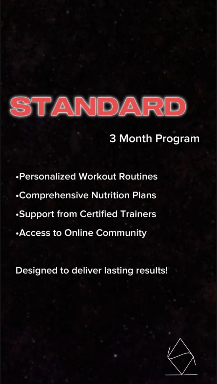 Elevate your fitness game with our Standard 3-Month Online Fitness Program! Designed to deliver lasting results, this program includes personalized workout routines, comprehensive nutrition plans, and ongoing support from our certified trainers. Experience the benefits of a well-rounded fitness regimen with strength training, cardio, and flexibility exercises. Stay motivated and track your progress with our online community and expert guidance. Start transforming your body and mind today